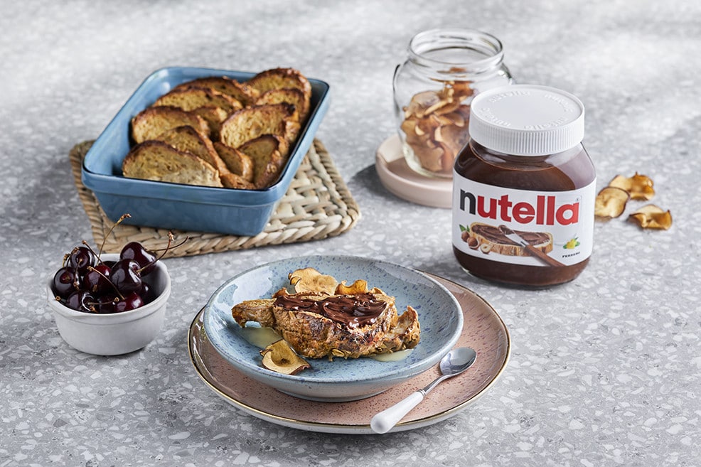 توست فرنسي مخبوز مع ®Nutella وتفاح مجفف