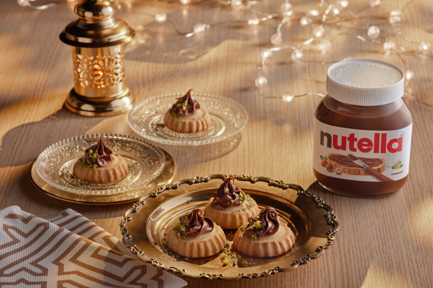 Take Kaak, spread Nutella® on top and garnish with pistachio.