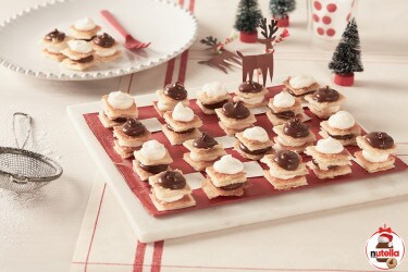 La Navidad debe ser dulce y alegre. He aquí la idea perfecta para conseguir ambas cosas. ¿Estás buscando fichas, peones o regalitos para tus juegos de Navidad? Estos cuadraditos de milhojas con crema de chantilly y Nutella® son la respuesta perfecta. Garantizado.