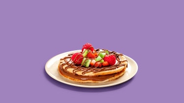 Arrange pancake on a plate. Spread the top pancake with 15g (1 tbsp) Nutella® then sprinkle with diced kiwifruit and fresh berries to serve.