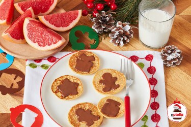 Décorer avec de la tartinade aux noisettes NUTELLA® en utilisant le pochoir NUTELLA® de votre choix ou tout autre pochoir des Fêtes, puis servir. Accompagner chaque portion avec un verre de lait et des fruits.