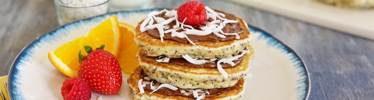 Avant de servir, étaler 1 c. à thé (5 mL) de Nutella® de chaque côté des galettes et parsemer de la moitié de la noix de coco. Superposer les galettes nature restantes (environ 5), les tartiner de Nutella® et les parsemer de noix de coco (prévoir 3 galettes d'avoine par tour). Servir avec un verre de lait et des tranches d'orange.