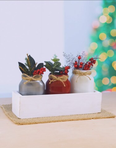 Befülle zum Schluss deine fertigen Gläser mit den weihnachtlichen Trockenblumen, stelle sie dann in die Holzkiste und fertig ist deine weihnachtliche Tischdeko mit nutella®.