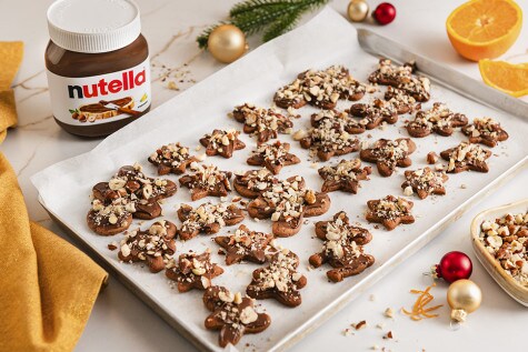 Jeweils 3 Lebkuchen-Kekse mit insgesamt 15 g nutella® bestreichen, mit gehackten Haselnüssen bestreuen und genießen.