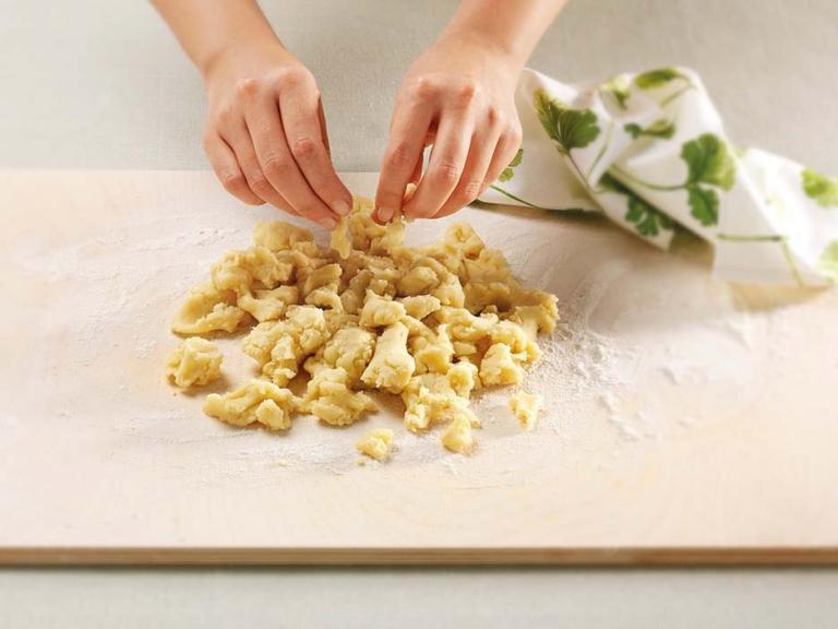 Con la ayuda de un rodillo, extiende la masa hasta que tenga un grosor de 5 mm y córtala en círculos ligeramente más grandes que los moldes de tartaleta que vayas a utilizar.
