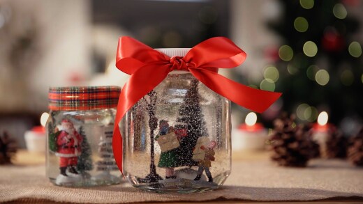 Llena el tarro con agua y ciérralo con la tapa. Envuelve la tapa con el lazo rojo y haz un bonito lazo.