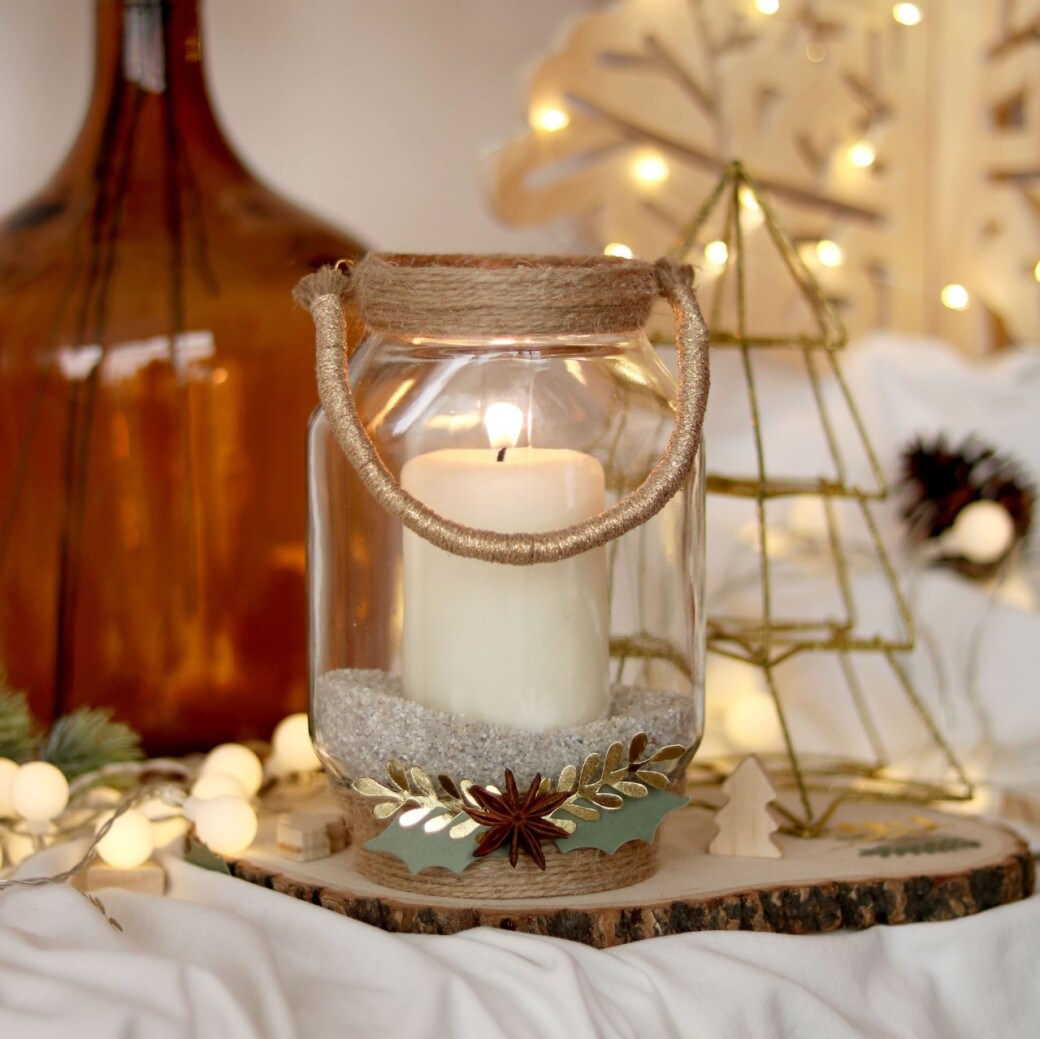 Vous pouvez décorer votre lanterne avec des petits éléments de Noël. Vous pouvez par exemple coller des formes en papier découpé, mais aussi ajouter une fleur d’anis ! -