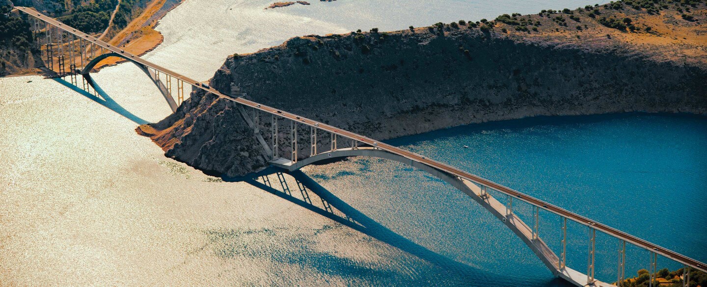 Dobrodošli na otoku Krku! Zahvaljujoč Krškemu mostu je zelo enostavno obiskati naš "zlati otok". Most je bil zgrajen in odprt za uporabo leta 1980, še danes pa nosi naziv enega izmed mostov z najdaljšim betonskim lokom na svetu (390 m). Na sredini ga loči otoček Sveti Marko, njegovi edini šibki točki pa sta - burja in sol.