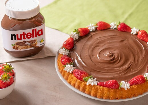 Cotta la base della crostata morbida, fatela raffreddare completamente, rimuovetela dallo stampo con l'aiuto di un piatto o di un vassoio e per farcire la crostata aggiungete un cucchiaio la Nutella®.