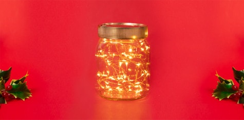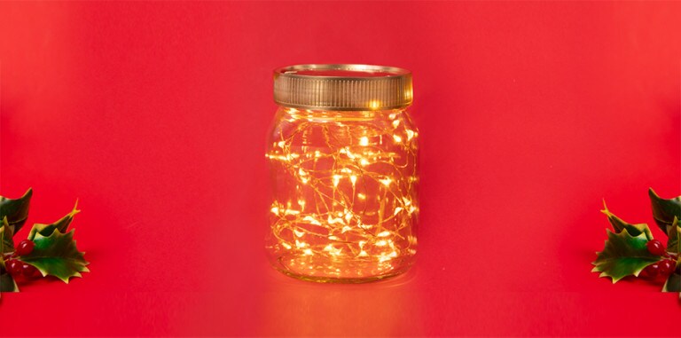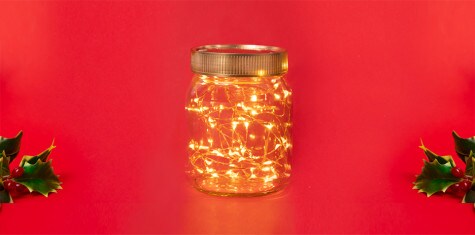 Inserisci le lucine decorative all'interno del vasetto, accendile, chiudi con il tappo, et voilà! Il vostro Vasetto Lampada è pronto per essere appeso e illuminare le vostre feste.