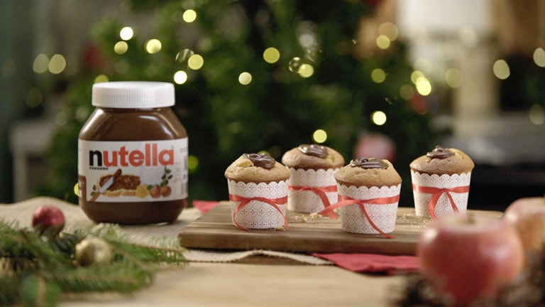 4Используя нож, отрежьте верхушку маффинов и наполните с помощью кондитерского мешка каждый по 15 г Nutella® (чайная ложка на порцию)