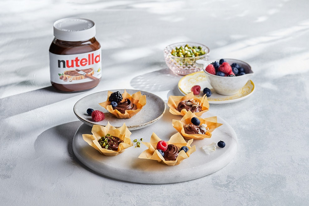 Recipe Open Nutella® Sambousak Easy 30 min If you like it, share it on Good to know Our palm oil is 100% RSPO certified sustainable and traceable and we are committed to no deforestation. Discover more Good to know All the cocoa we buy comes from Rainforest Alliance Certified farms. Discover more Good to know Uhm, while preparing this recipe did you finish your Nutella® jar? You can upcycle it! Discover more GET INSPIRED Other recipes Doigt de Fatima with Nutella® Oat Thumb Nutella® Cookie Mini Puff Croissant with Nutella® Feteer Bites with Nutella® & Pistachios Sabli with Nutella® Fekkas with Nutella® View all recipes