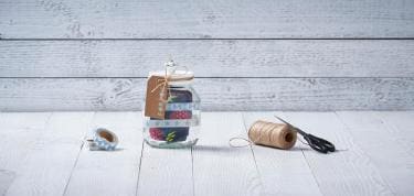 STEP 2Decorate the jar with the washi tape. If you prefer you can use only one, or more than two rows of tape.
