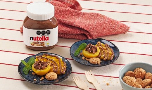 Las galletas Amaretti nacieron en Italia durante la Edad Media a finales del siglo XIII, y se esparcieron a través de Europa durante el Renacimiento, por eso, esta receta de duraznos con Nutella® y galletas Amaretti es indiscutiblemente una invención italiana.