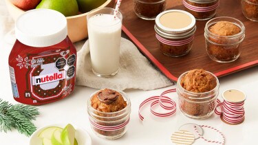 Consejo: ¡Estos muffins son un gran regalo! Simplemente esperar que los muffins se enfríen, luego colocar las tapas en los frascos y decorar con un listón. Regalar con un bote de NUTELLA®.