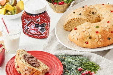 Conocido también como la Rosca de Reyes, este tradicional pan dulce español se sirve el Día de los Tres Reyes. Con forma de corona y servido con NUTELLA®, tendrás un centro de mesa navideño adecuado para un rey.