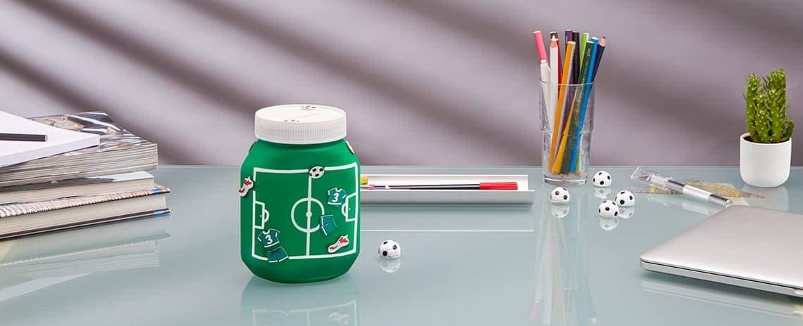 Saving money has never been so fun! Follow the steps of this simple and creative DIY idea and decorate your moneybox jar with the theme you prefer. For example, if you are a football lover, cover your money jar with stickers of your favourite teams!