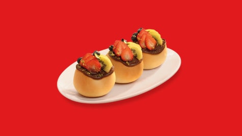 Top each Monay bread evenly with blueberries, strawberries, and/or pistachio nuts.