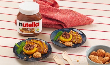 Amaretti biscuits originated in Italy during the Middle Ages towards the end of the thirteenth century, and they spread throughout Europe during the Renaissance. In addition to their production in Italy, and particularly in Lombardy, they also have a great tradition of production in France. This recipe for peaches with Nutella® and amaretti, however, is an entirely Italian invention.