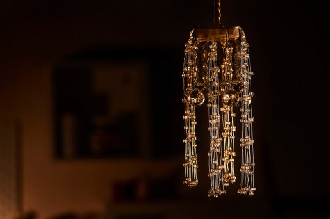 Zakręć słoik i zaczep sznury koralików wkładając, haczyki w otwory dookoła pokrywki.