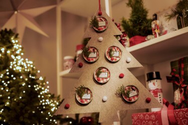 Choinkę można zamontować do ściany lub na drzwiach za pomocą taśm dwustronnych lub zawiesić na kawałku ozdobnej wstążki.