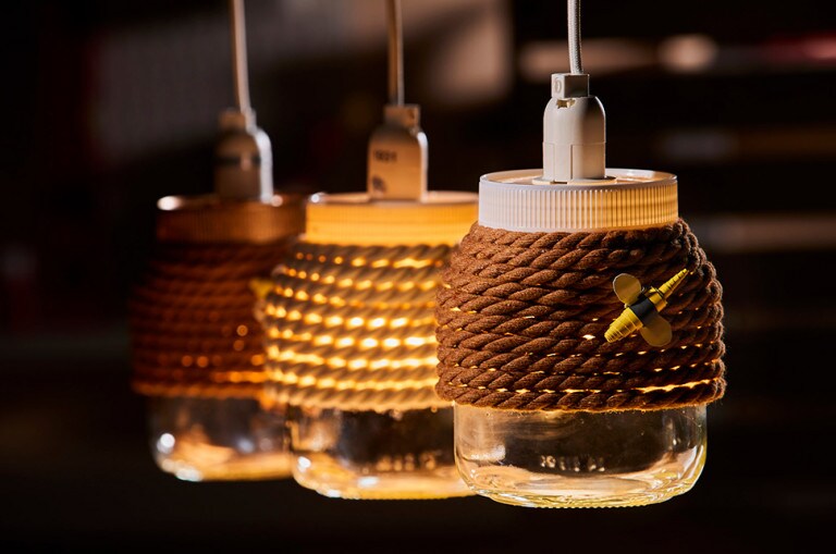 KROK 5Owiń kilka razy słoik sznurkiem, co jakiś czas podklejając go do słoika gorącym klejem (klej ma wysoką temperaturę – postępuj ostrożnie). Odetnij sznurek, a jego końcówkę przyklej do słoika. Zamknij słoik pokrywką z żarówką.
