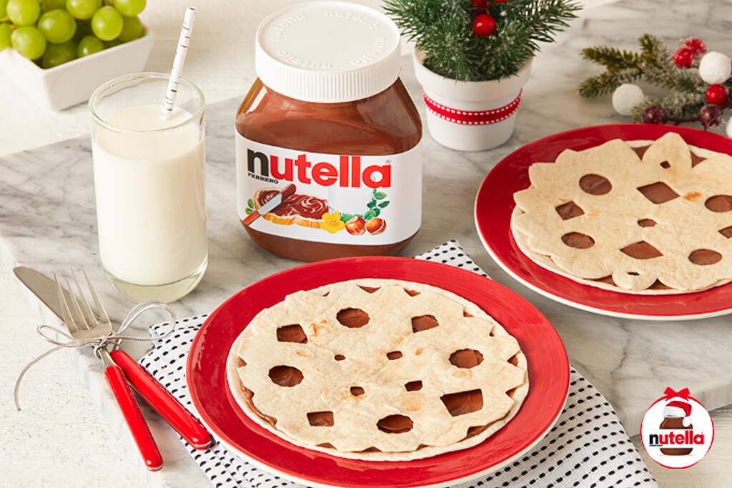Spread NUTELLA® hazelnut spread on each of the whole tortillas and place a cut out tortilla on top to create a snowflake shape.