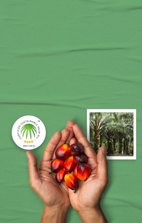 100% of our palm oil is RSPO certified sustainable and we are committed to no deforestation