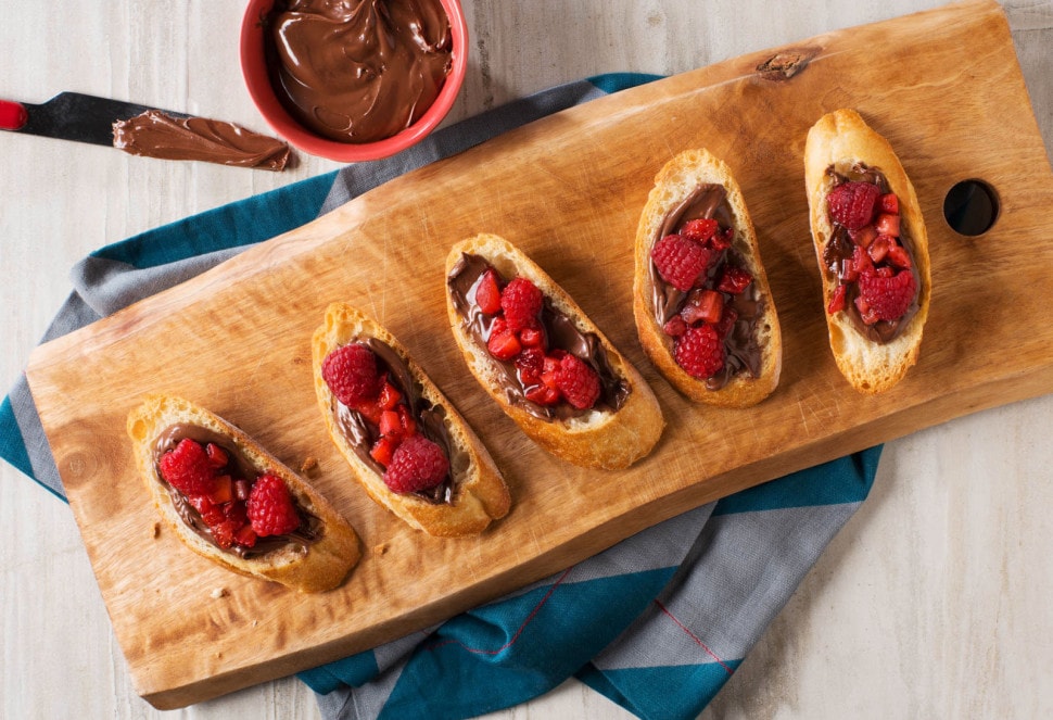 Bruschetta topped with Nutella® hazelnut spread and Blackberries