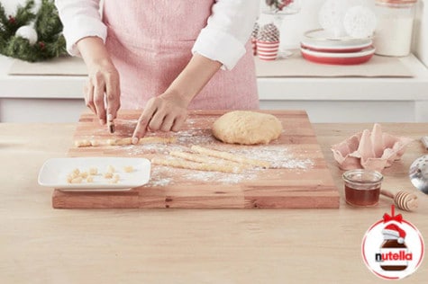 Cut those strings into 2cm cubes and place them on a surface that has been dusted with flour